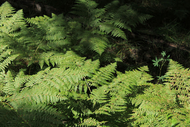 Filtered light of afternoon shades the bracken below in a variegated pattern......
